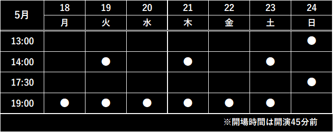 ※開演後の入場は、演出の都合により入場の制限・お席の移動をお願いする可能性がございます。